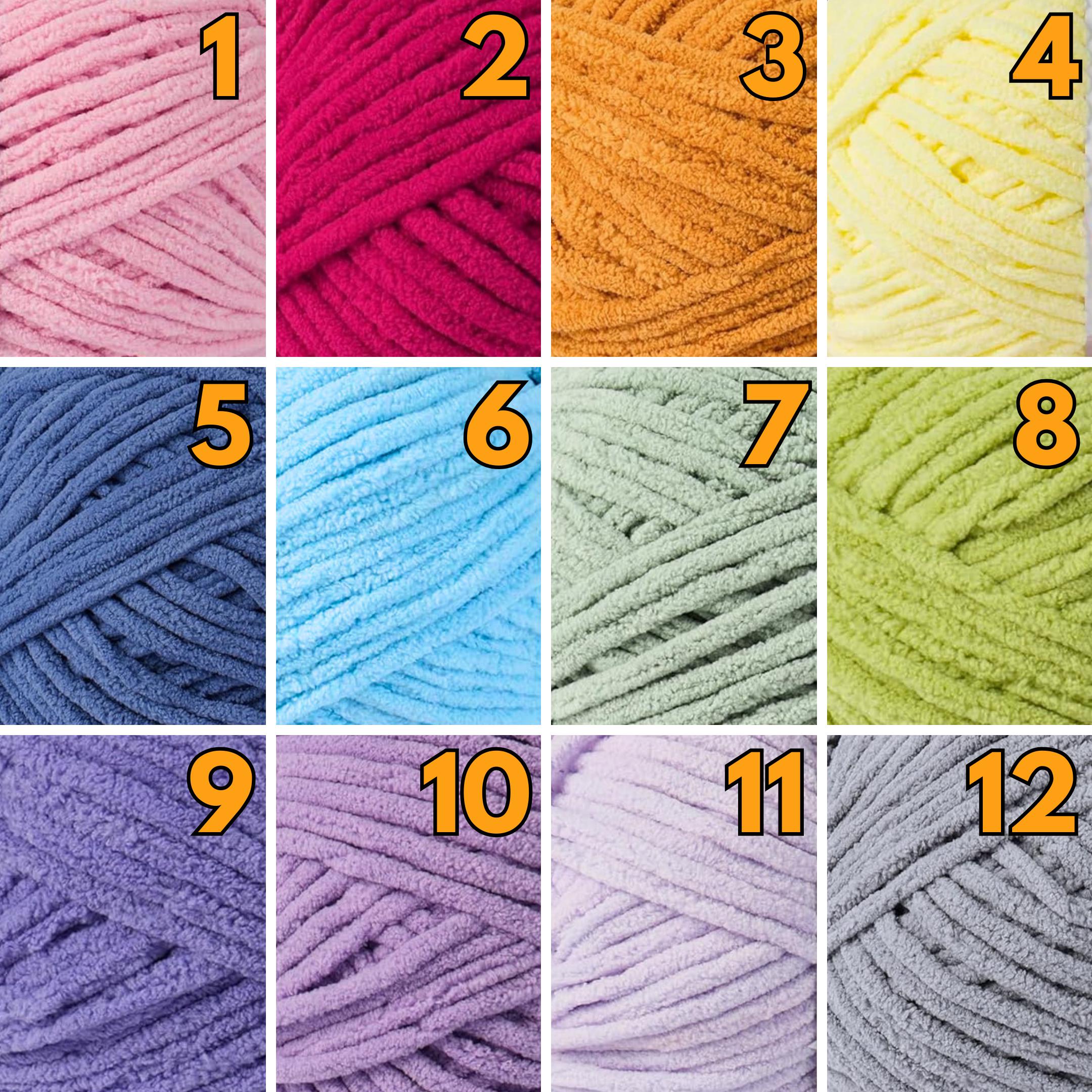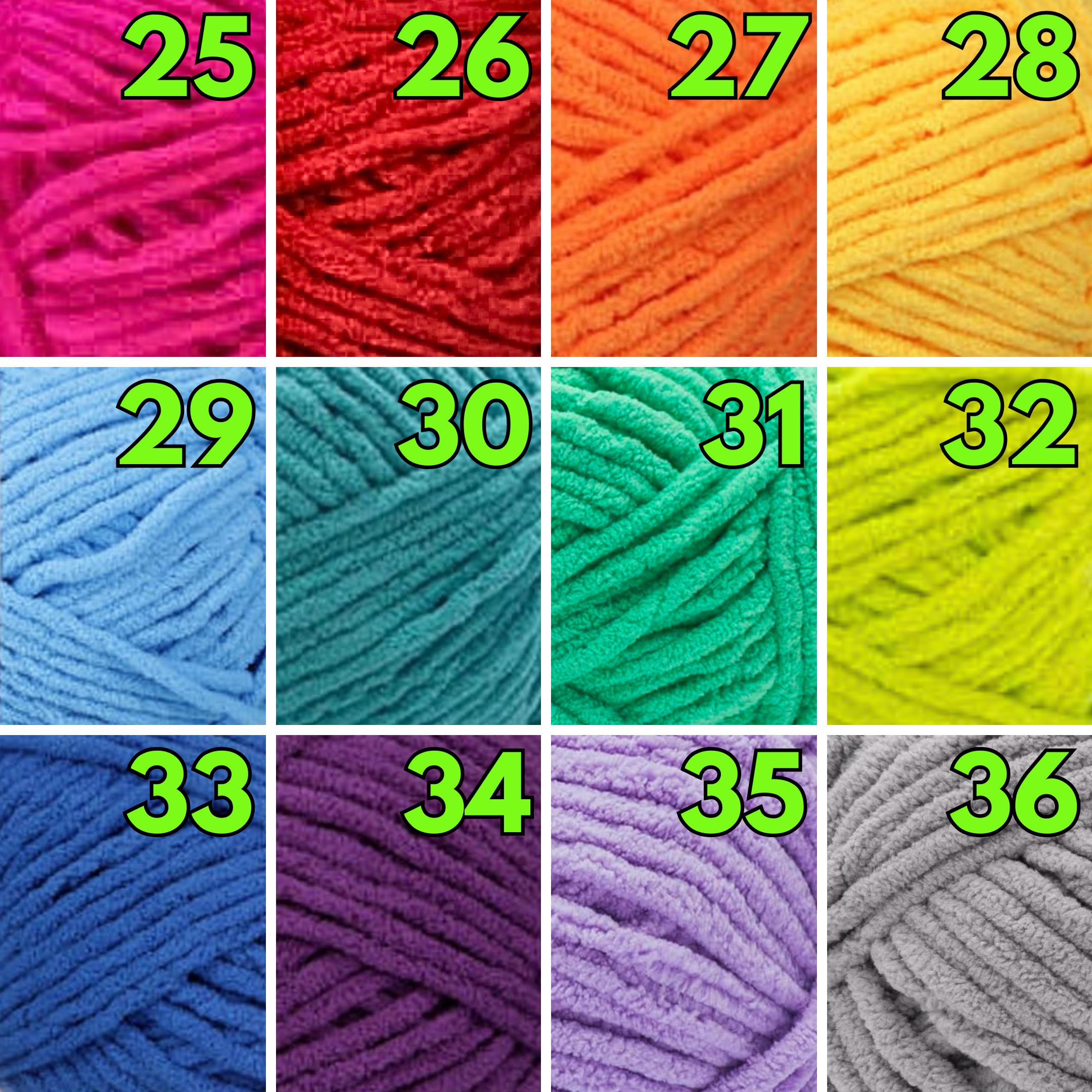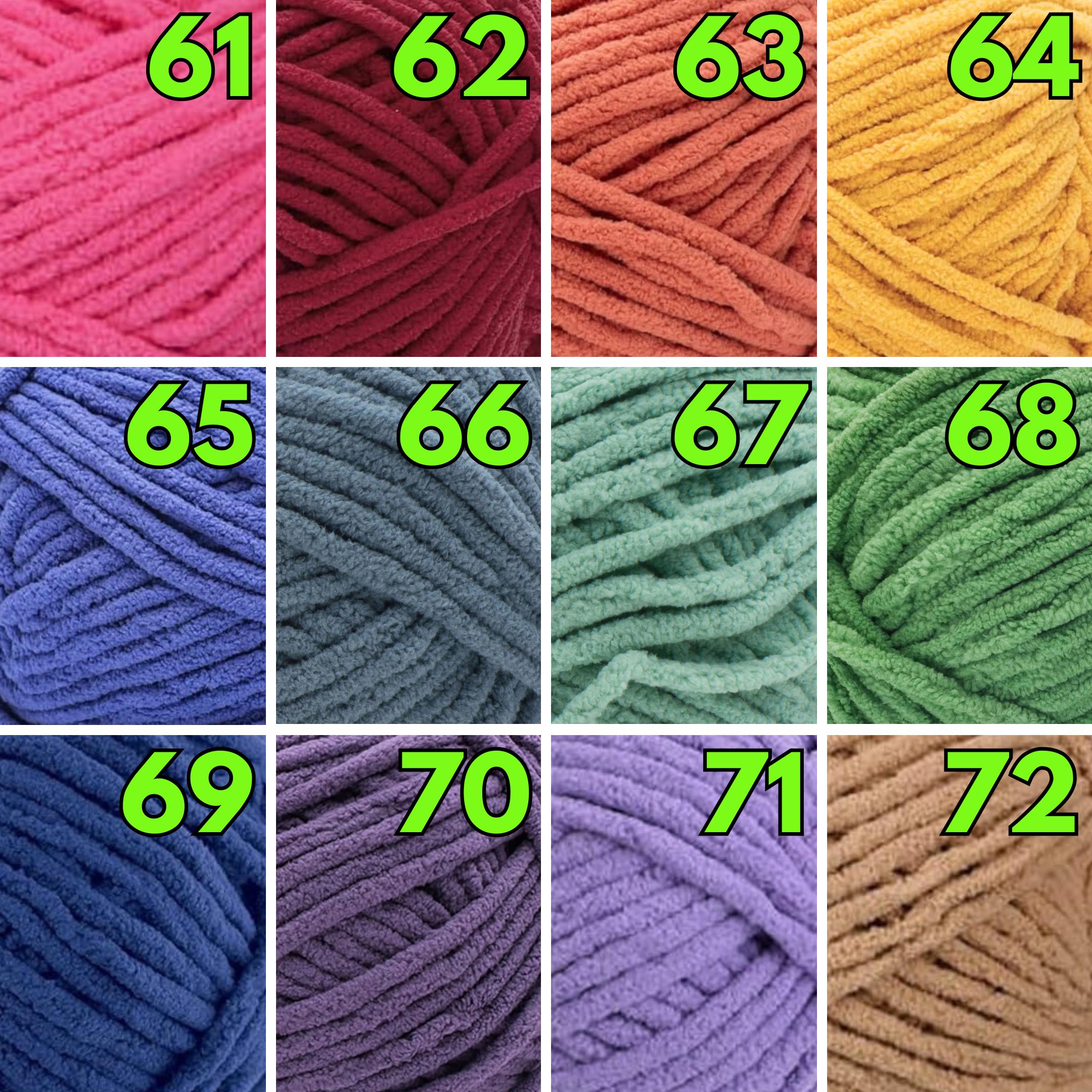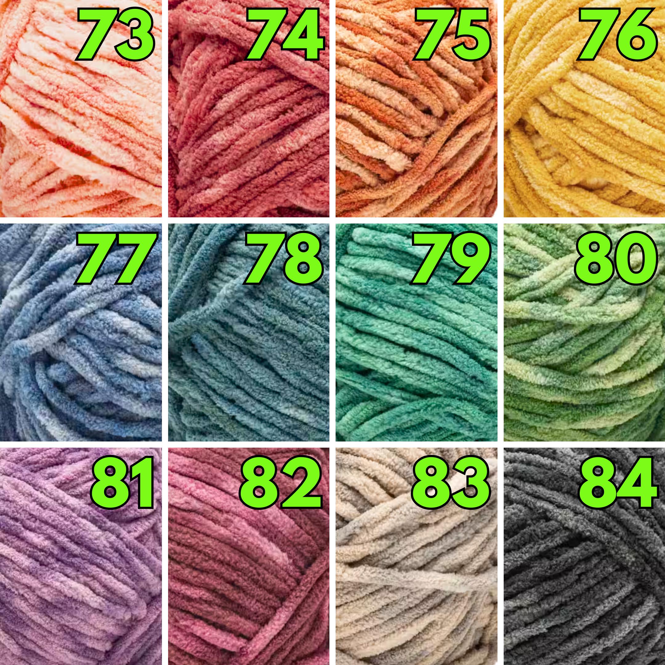 A hand-knit cozy crochet throw blanket with #6 super bulky yarn, either Knyteruna or Bernat Blanket brand. If choosing multiple colors, please stick with the same brand as the brands differ on yarn thickness just enough that it would be noticeable to see them beside one another in a throw blanket. The brands are denoted by the color of the numbers on the color choices: Knyteruna is golden yellow (#1--#18); Bernat is bright green (#19--#84).